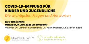 Live-Talk online | Die aktuelle Debatte um eine mögliche Empfehlung, nun auch Kinder und Jugendliche gegen Covid-19 zu impfen, nimmt rasant Fahrt auf. Die europäische Arzneimittelbehörde EMA will zeitnah entscheiden, ob der Impfstoff von BioNTech/Pfizer schon für Jugendliche ab 12 Jahren freigegeben wird. Diese Altersgruppe könnte dann bereits im Sommer geimpft werden. Ob auch jüngere Kinder bald folgen sollen, steht ebenfalls im Raum. Viele Fragen dazu sind noch ungeklärt: Wie sinnvoll sind Impfungen in dieser Altersgruppe? Welche Nebenwirkungen wurden bisher beobachtet? Wie sind die langfristigen Folgen einzuschätzen? Welche Erfahrungen liegen aus den bisherigen Studien vor? Tragen die Impfungen zum Aufbau einer Herdenimmunität bei? Inwiefern sind Kinder und Jugendliche überhaupt daran beteiligt, SARS-CoV-2 zu verbreiten? Über all diese Fragen sprechen wir mit: Prof. Dr. Christof Kuhbandner, Lehrstuhlinhaber für Pädagogische Psychologie an der Universität Regensburg Dr. med. Karin Michael, Fachärztin für Kinder- und Jugendmedizin im Gemeinschaftskrankenhaus Herdecke Dr. med. Steffen Rabe, Facharzt für Kinder- und Jugendmedizin in München und Sprecher des Vorstandes ‚Ärzte für individuelle Impfentscheidung‘ e. V. Moderation: Annette Bopp, Journalistin für Medizin und Kultur, Hamburg Dieser…